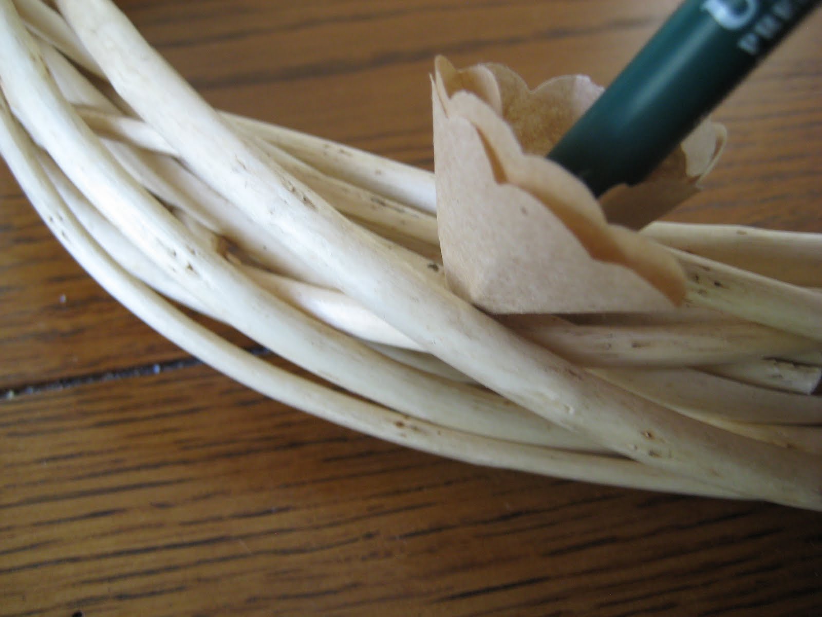 and cheap! so i got out my scallop punch, started punching out my bags, and gluing them into my wreath form.