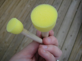 i started with these super cheap stenciling sponge brushes to make a perfect circle, and a plain old plastic juice lid to make a ring.