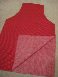 cut around your apron shape with an extra 1/2 inch or so [cut straight across the top, not around the ties!]. since your fabric was folded, you should have 2 apron shapes.